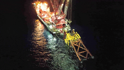 由于樂東10-1氣田新建平臺安裝受海上(shang)惡劣天氣(qi)和海底潮(chao)流影(ying)響且導管(guan)架(jia)重量和高度均接近起重(zhong)船作業能力極限為了能讓平(ping)臺安裝像(xiang)搭積木一樣“一擊即中(zhong)”中國海油項目團隊研究制訂(ding)五級施工計劃優化施工工藝(yi)采用船艏頂流作業模式克服海流影響搶抓作業窗口完成導管架(jia)坐底就位同時通過(guo)實時精細控制船舶動態實現上(shang)部(bu)組塊和導管架的(de)精(jing)準(zhun)合龍